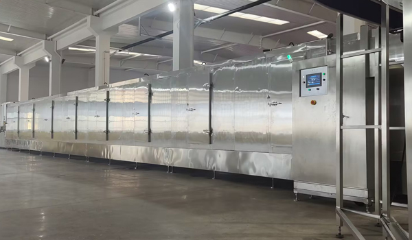 3.進(jìn)出料口處具備可調(diào)節(jié)噴淋模塊,可有效提高速凍效率。