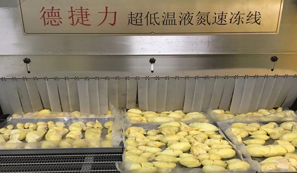 因此速凍榴蓮是最常見也最受歡迎的榴蓮保鮮方式,而德捷力生產的液氮榴蓮速凍機保鮮的核心是秒速鮮凍。通過-196℃的液氮進行不低于100分鐘的快速冷凍,經過液氮冷凍的榴蓮包裝后會被馬上轉移到-18℃的冷凍庫儲存,裝箱和發(fā)貨都持續(xù)在-18℃的環(huán)境中完成,經過一段時間的運輸,直到進入我國家的市場銷售。