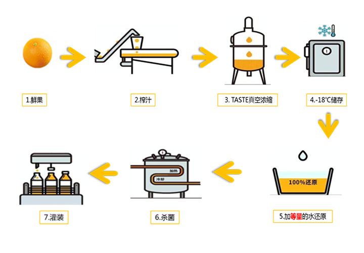 冷凍果汁飲用起來一般感覺更新鮮。你是否想過,清涼可口的冷凍果汁是如何保持新鮮味道的呢?跟隨德捷力果汁速凍機廠家,先來看張果汁的生產(chǎn)步驟圖: