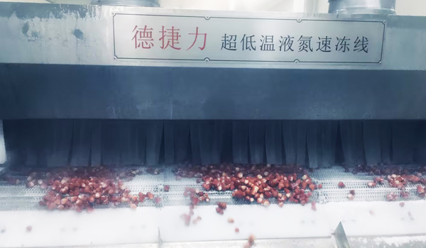 近日安徽某食品科技有限公司采購引用德捷力DJL-QFL-2418液氮速凍隧道,對草莓進(jìn)行加工處理只需10多分鐘即可完成速凍工藝。