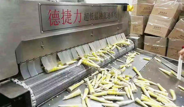 采用德捷力液氮速凍機(jī)的竹筍能夠較長時間地保持新鮮度,延長了竹筍的保質(zhì)期。這對于竹筍產(chǎn)地與市場存在距離、物流需求較高的地區(qū)尤為重要,可以使竹筍在運(yùn)輸和銷售過程中不易腐敗,提供了更長的銷售窗口。 在竹筍市場競爭中能夠為生產(chǎn)商提供更具競爭力的產(chǎn)品,滿足消費(fèi)者對優(yōu)質(zhì)竹筍的需求。